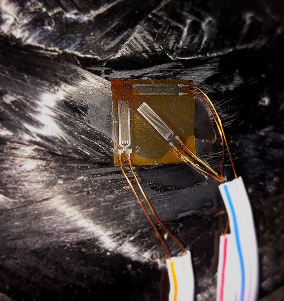 Um sowohl axiale als auch radiale Dehnungen und potenzielle Off-Axis-Belastungen beim Bersten zu erfassen, hat sich das Team für BFRAB-5 Dehnmessstreifen entschieden. Diese Streifen bieten: