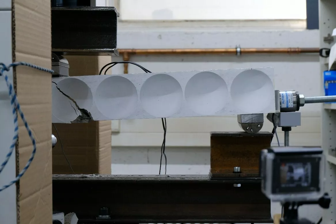 Afin de mesurer avec précision les forces de précontrainte pendant le processus de mise en tension ainsi que lors de l’essai de flexion 4 points, une version spéciale du capteur de force ALF 202 avec une plage de mesure de 25 kN a été fournie. Cette version personnalisée était dotée d’un alésage traversant adapté, permettant de guider avec précision l’unité d’ancrage unilatérale du câble de précontrainte et d’assurer ainsi une introduction de force très précise sur la bague de compression du capteur.